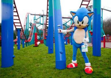 Den blåa igelkotten får även en berg-och-dal-bana – kallad Sonic Spinball – byggd efter sig, men ser inte nöjesfältets egna Sonic-maskot ut att vara helt ur form?