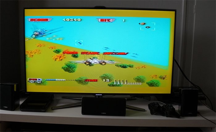 Jag får dock stora problem med själva spelkontrollen till en början då jag är van vid omvänt sikte – trycker man nedåt går siktet uppåt och vice versa – men här finns ingen möjlighet att ändra kontrollschemat. Det är dock lätt att anpassa sig då attackplanet endast har ett visst antal olika lägen att befinna sig på, till skillnad från dagens spel där vi är vana vid att kunna styra över varenda liten millimeter.